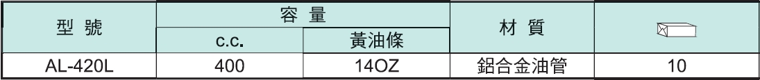 ♦新一代手動式黃油槍裝油管,由新開發鋁合金材質製成,重量比傳統式輕,操作輕鬆適合各種用途,長時間使用更佳。 ♦強力彈簧,不因使用久而彈性疲乏。 ♦末端為可拆式底蓋,方便自行維修,節省成本。 ♦可放入14OZ條狀黃油或裝填桶裝黃油。 ♦可依照需求,另選購各式軟管。