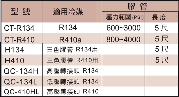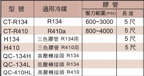 ♦CT-R410附轉接頭,採用鋁合金本體,膠管耐壓800~4000PSI。