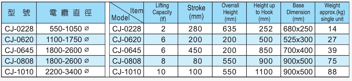 ♦電線、電纜線之捲盤輪座支撐專用的齒輪千斤頂。以2台為一組使用。 ♦2tons用,可折疊攜帶方便,接地幅度縮短,減少通行障礙。 6tons用,備有兩款機型,直徑φ1100~2600之捲盤輪座皆能使用。 8tons、10tons用,驅動部使用AJ-1510操作容易;大直徑之捲盤輪作也能使用;可簡易拆解之構造。