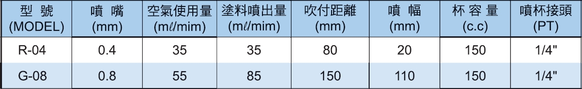 ♦超小型噴槍使用空氣壓力低,少空氣使用量,塗料呈現高微粒化,以減少塗料飛散,污染工作環境,並提升塗料效率與效果。
