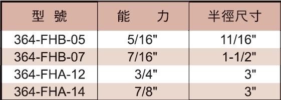 ♦364FHB系列為專利活動旋把手,可以很輕易地將管子彎至180度,參考使用圖片。