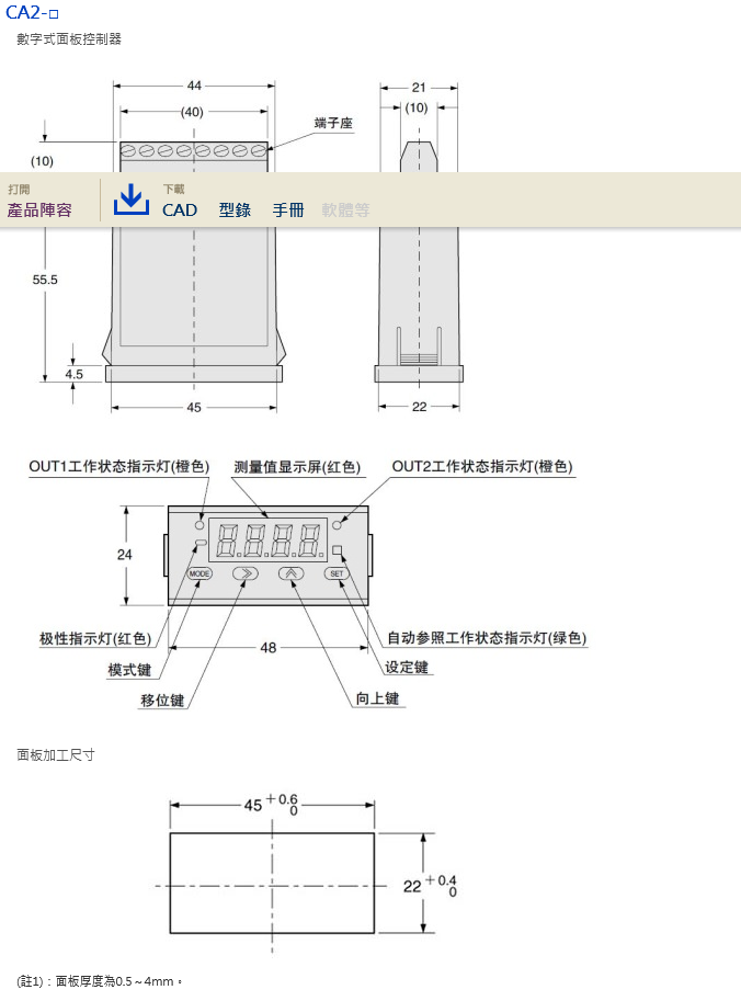 超小型數位面板控制器 CA2