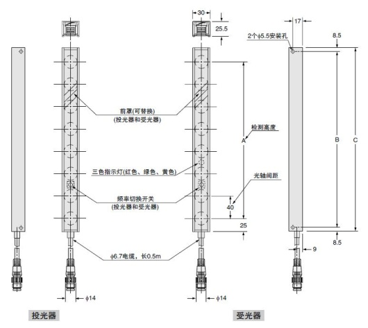 40mm光軸間距通用區域感測器 NA40