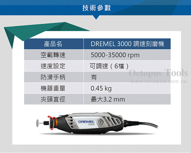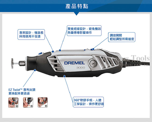 一、Dremel 精美原廠在台販售之3000調速刻磨機為通過台灣政府檢驗合格之產品,消費者可安心選購及使用。
